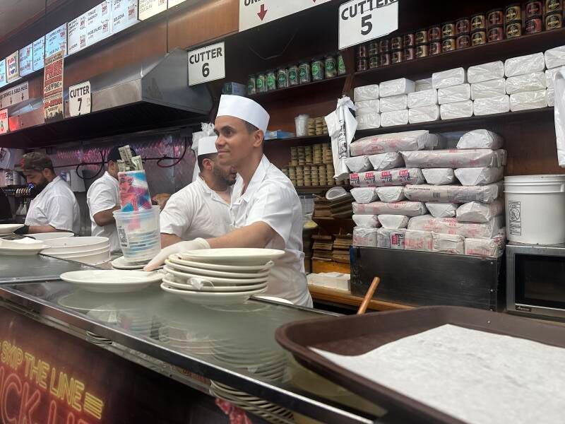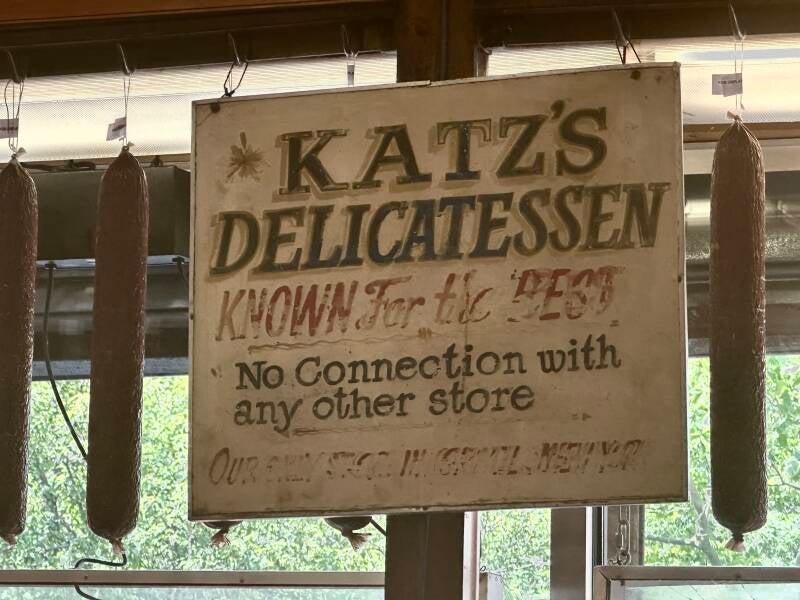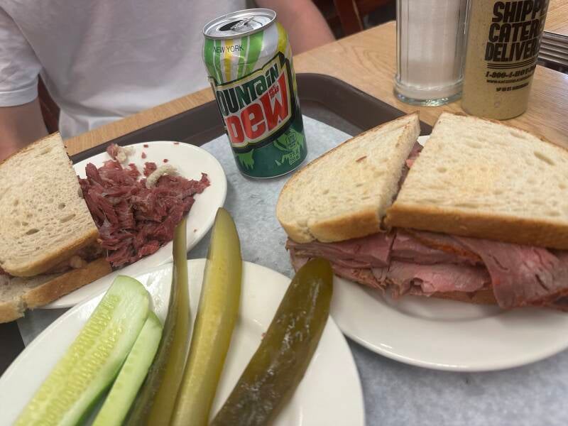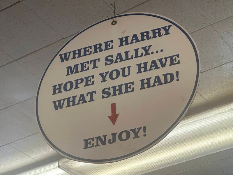 We hebben van Yair en Jaffa nog een tip gekregen, toen we ze hier een paar dagen geleden tegen kwamen. Ga naar Katz’s om te eten. Dus hup de metro in en op naar de beroemdste delicatessenzaak van New York. De zaak bestaat al meer dan 125 jaar en het is er ontzettend druk. Het ziet er echt Amerikaans uit en je kunt je goed voorstellen hoe men hier in 1888 al een broodje kwam eten. De eigenaar is inmiddels van de vijfde generatie. We bestellen twee broodjes, die rijkelijk belegd zijn met een hoop plakken vlees. Het smaakt ons prima, maar we genieten vooral van de authentieke sfeer. Dan zie ik een bordje hangen, waardoor ik er achter kom dat hier de beroemde scene van ‘When Harry met Sally’ opgenomen is. Ja, die scene ja…
