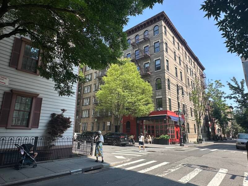 Over beroemde scenes gesproken… In de hippe wijk Greenwich Village staat het appartement van de TV serie Friends. Toen ik op kamers in Antwerpen woonde, huurden we geregeld videobanden van deze Amerikaanse hit-serie. Ik denk dat ik de serie daarna nog wel een keer of 3 helemaal heb gezien. De serie zelf is natuurlijk gewoon in de studio in Los Angeles opgenomen, maar het appartement dat je geregeld in beeld ziet, staat hier. De wijk is erg mooi. Weinig hoogbouw, maar luxe huizen en veel groen. De sfeer is er gemoedelijk. Wij zijn niet de enigen die het huis hebben gevonden. Een handje vol mensen staat het pand ook te bewonderen