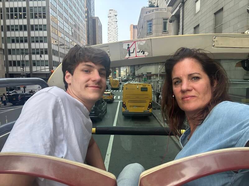 Noortje: Na een redelijke nacht, zitten we rond 9 uur aan het ontbijt. De plannen zijn om naar Rockefeller Center te lopen om naar The Top of the Rock te gaan. Een uitkijkpunt op 259 meter hoogte. Het zicht is wat heïg, maar het is toch altijd weer leuk om de stad te zien vanaf boven. Lars ziet vanaf groote hoogte voor het eerst het Central Park en heeft wel zin om daar te gaan fietsen. Opweg naar het verhuurpunt zien we voor het eerst een Cyber truck in het echt, wel spacey, maar eigelijk ook een beetje plastic zo van dichtbij.