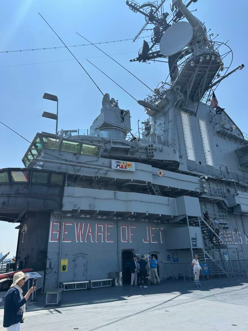Vandaag slapen we een klein beetje uit. Ik haal het ontbijt beneden even op en we eten in bed. Buiten is het 28 graden in de schaduw en de zon schijnt fel. We verlaten het hotel en lopen in de brandende zon naar het Intrepid museum. Een vliegdekschip waar allerlei gevechtsvliegtuigen op staan. We hebben het van de week al even zien liggen. Het schip was tijdens de Tweede Wereldoorlog in de Stille Oceaan actief in de strijd tegen de Japanners. Daarnaast speelde het Intrepid een belangrijke rol als vliegdekschip tijdens de Vietnamoorlog. In 1982 werd het een museum.