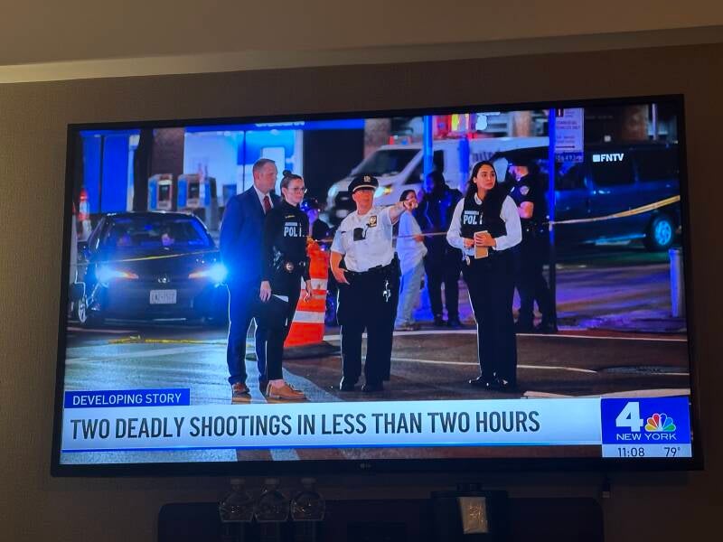We pakken onze tassen in en hebben op de achtergrond het nieuws aanstaan. We stoppen even met inpakken… Twee dodelijke schietpartijen in de stad gisterenavond! “Een man werd doodgeschoten op de 42ste straat tussen 8th en 9th Avenue woensdagavond laat” Dat is vlak bij ons hotel. We waren rond die tijd wel op straat, maar hebben er niks van meegekregen. Nu hoor je hier de hele dag sirenes, dus dat is niet echt iets waar je van opkijkt.
