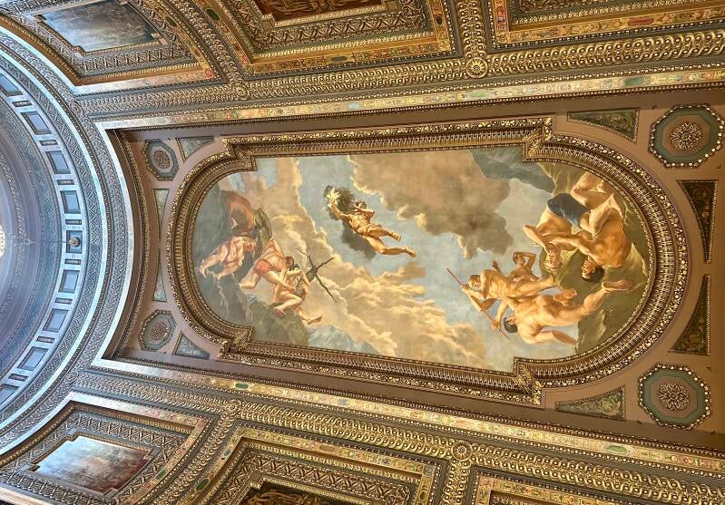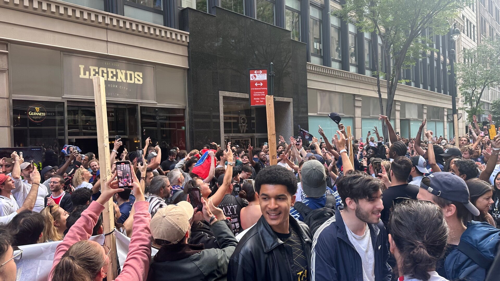 Na het WTC gebied te hebben verlaten, nemen we de metro naar China town en Little Italy. Even lekker wat italiaans eten. Daarna struinen we nog over 5th avenue. Helaas staat het beroemde Flat Iron Building in de stijgers. Van het voorspelde noodweer is niks te zien trouwens. We gaan de bibliotheek nog even binnen. Dat heeft een mooie schildering op het plafond. We komen langs het Empire State Building en besluiten daar vanavond als het donker is een bezoekje aan te brengen. Uit de zijstraat komt een hoop gezelligheid. De straat staat vol met voetbalsupporters. Paris Saint-germain heeft de Champions League finale met 5-0 van Inter Milan gewonnen en dat wordt gevierd met luid gezang.